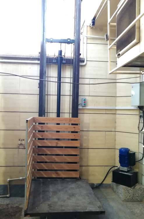 مناسب برای ارتفاع کف تا کف 300 تا 350 سانتی متر، ابعاد کفی 90 در90 ، دارای نرده حفاظ برای یک طرف، استفاده از سیم بکسل گوستاولف چینی شماره 10، دارای پمپ روغن مارک zbf